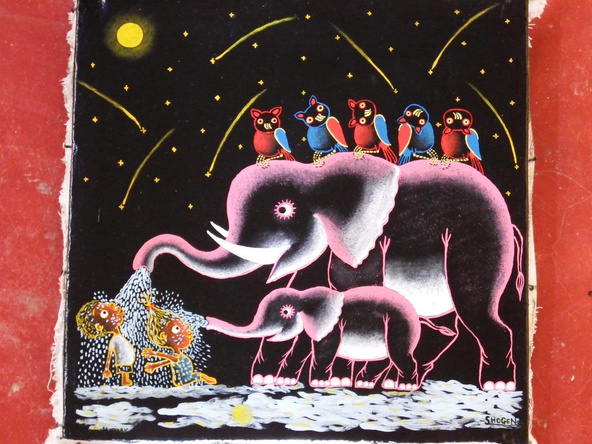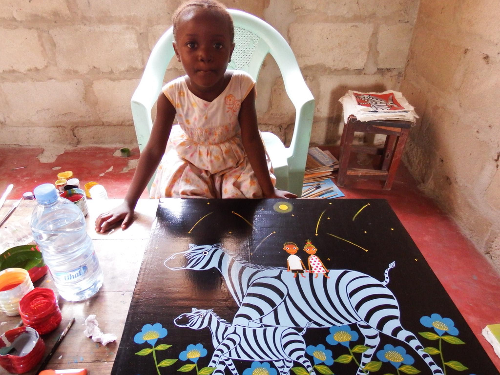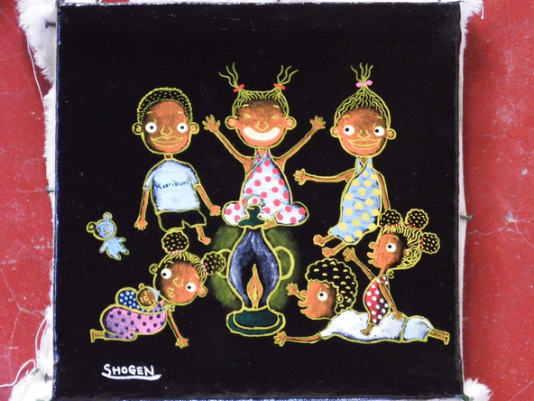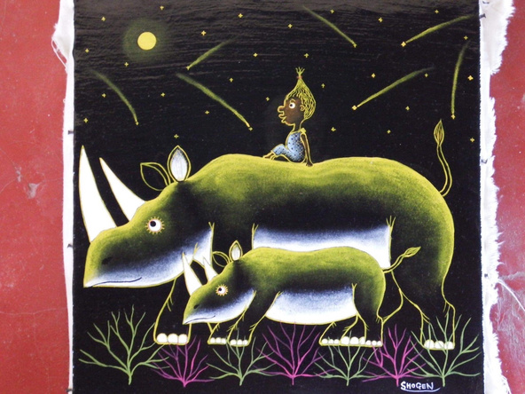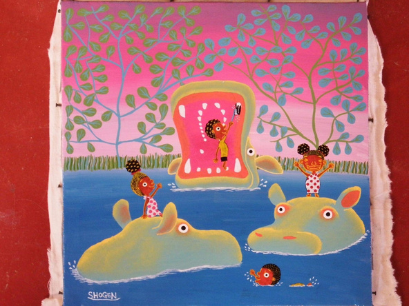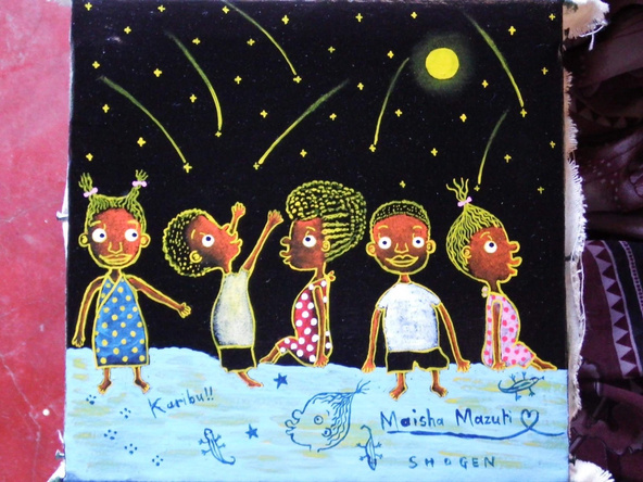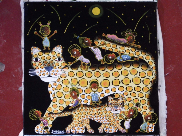 ティンガティンガ創始者Edward Saidi Tingatingaがおこなっていた“人々を幸せにする絵”への到達を目指している。